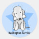 Cute cartoon Bedlington Terrier gifts, with the lamb-like breed drawing sitting in the centre, in front of a giant blue star. Super adorable Bedlington Terrier t-shirts and more have the dog breed's name printed underneath.