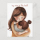 This design features a mother and her daughter hugging each other in front of a plain white background. The design has muted, earthly colours and a customizable message with the default text: my mom is the best.