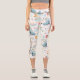 Kawaii Winter Pattern in Ice Blue and Pink Capri Leggings