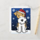 Wire Fox Terrier Christmas Postcards are perfect to send to all the friends and family on your holiday list! A super cute kawaii Wire Fox Terrier cartoon sits upon freshly fallen snow while wearing a Santa cap, and snowflakes drift gently down all around him. Other dog breeds are available.