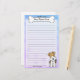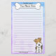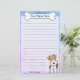 Colourful Kawaii Wire Fox Terrier stationery with a cartoon dog breed in the lower right corner. The top portion can be instantly personalized with your name inside the big doggie bone. Border and paper background are a pretty blue to purple fade.