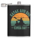 Awesome kayaking design T-shirts, posters, bags, planners, and more featuring a kayaker and his dog paddling on a river with text that reads Kayak and Dog Kinda Day, great for anyone who loves kayaking with their dog!