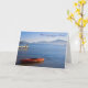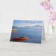 A red kayak teathered near the shore of Lake George in New York. Early morning light comes in over the Adirondack mountains and illuminates the mist nestled in by the lake. Customize this card for Father's Day or Birthday!