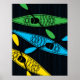 Poster sized kayak print in green, blue and yellow