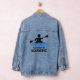 Kayaking Design on the back of this Denim Jacket with customizable text to change or delete. Select your appropriate size from the drop-down menu.