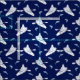 Kayaks and Fish Navy Blue and White Patterned Fabric