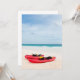 Red kayaks at tropical beach on Bahamas