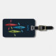 Three bright stylized kayaks on a navy blue background - a great water-sport luggage tag for the kayak enthusiast or kayaking clubs. Fully customizable.