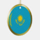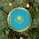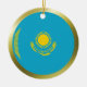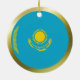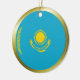 Both sides of this ornament feature the flag of Kazakhstan morphed into a circle with a golden rim. Simple Kazakhstani decoration for your home.