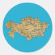 A map of Kazakhstan is centred over a flag-colour background on this sticker. Stick up for Kazakhstani values!