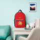 Backpack red with red, white, black and gold concentric-circles design with "KANSAS CITY, MISSOURI CENTER OF THE UNIVERSE GO GHIEFS!!!" "HEY BABY!!! SUNNY & RAYRAY BEAM THE SUNSHINE BROTHERS" with a picture of Sunny and RAYRAY BEAM and with one Y-NOT-ME logo in the background. This design is a shout-out to Kansas City, Missouri home of the Superbowl Champions.