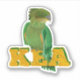 An illustration of a kea. This is a bird found in New Zealand. They have a reputation of being very cheaky and curious. This cute green mountain parrot is perched on the word kea.