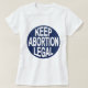 "Keep abortion legal." Blue/white text in a circle, on t-shirts, buttons, stickers, gifts.