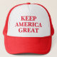 Keep America Great red Trump support Trucker Hat. Support the republican party campaign. Political caps for him and her. Presidential 2024 election accessories for voters, volunteers, friends, fans, family etc. Available in other colors too. Big letter typography template.