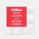Keep Bacon and Never Share. Based on the “Keep Calm and Carry On” World War Two poster except with bacon that you cannot have. Nom, nom. White text on a red background.