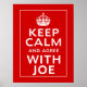 Keep Calm And Agree With Joe. Spoof of vintage classic 'Keep Calm And Carry On' WW2 poster.