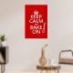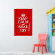 This reads Keep Calm and Bake On, in the style of the classic keep calm poster. There is a balloon whisk next to the words. It's a beautiful stylish design, which makes a wonderful range of products for anyone who loves to bake. Also great promotional materials for bakers, bakeries, cafes, and more.