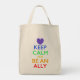 Celebrate pride with this fun design that spoofs the famous British propaganda phrase, which here reads "Keep Calm and Be An Ally" in the same poster-style all capital font. The words are in rainbow colours and the crown icon has been replaced by a purple heart. This is made for everyone who knows that love is love.