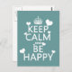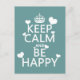 This reads Keep Calm and Be Happy, in the style of the classic keep calm poster. I've kept the crown at the top, and added hearts to all the letters, making an uplifting happy design which is one of the most popular in my store. It's a lovely message, and a great way to spread love to your nearest and dearest. Perfect for valentines and birthdays.