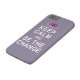 Beautiful muted lavender case with purple lotus flower and text that reads Keep Calm and Be the Change. Be reminded of your spiritual side every day when you see this calming and lovely phone cover. Or give them as gifts to your friends in yoga class. Copyright Scarebaby Design.