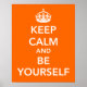 Keep Calm and Be Yourself Poster in white text and orange background.