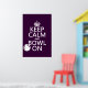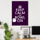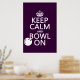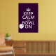 This reads 'Keep Calm and Bowl On' in the style of the original Keep Calm posters.  There is a silhouette of a bowling ball beside the words.  It's a clean fun design perfect for anyone who loves to bowl.