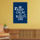 This reads Keep Calm and Build On, in the style of the classic keep calm poster. There are silhouettes of a hammer and power drill around the words. It's a fun eye catching design, perfect gifts for all builders and contractors, or anyone who likes a bit of DIY.