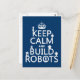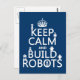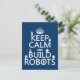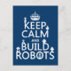 This reads 'Keep Calm and Build Robots' and there are lots of robot silhouettes sitting on the letters. It's a great design for anyone who loves science and robots and science fiction. This design has also been featured in some of the biggest robot films in recent years.