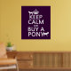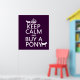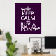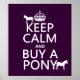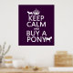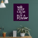 This reads Keep Calm and Buy A Pony in the style of the classic poster. There are two ponies standing next to the words. Forget the stiff upper lip, these are truly words to live by. Great funny design for the pony lover in your life.