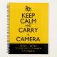 Keep Calm and Carry A Camera and record and plan in this personalized planner. Great for photographers who use their camera (or cell phone) for hobby or professional photography or class assignments. Personalize the front and back covers. You can change the background colour if you like.