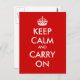 Fully customizable "Keep Calm and Carry On" postcard based on the British WWII poster! You can easily change the text by entering your own in the text fields, and pick your favourite colour for the background! Get creative and express yourself! :-)