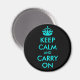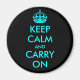 Round or square magnet that you can customize with a parody of the British WII war poster "Keep Calm and Carry On".
