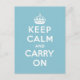 Blue and white keep calm and carry on To change size has your taste. This design makes reference to the famous poster appeared during the Second World War.