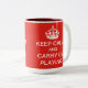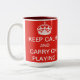 "Keep calm and carry on playing" - this is a classic organist or choir director manoeuvre - something goes wrong during an anthem, hymn or voluntary, so the best thing to do is to just keep on playing and hope that no-one has noticed! The design has a red background and the famous crown with the words as in the WWII poster of the "Keep Calm and Carry on"... series. A fun design that any musician would enjoy .