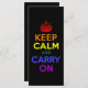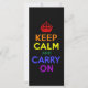 Keep Calm and Carry On vintage-style design in a rainbow of colours against a black background.