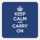 Keep Calm and Carry On Square Sticker - Dk Blue