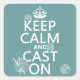 This reads Keep Calm and Cast On, in the style of the classic keep calm poster. There are silhouettes of balls of yarn snuggled among the letters. It's a beautiful design which anyone who loves to knit will adore.
