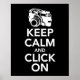 This is a print that is done in the style of the popular Keep Calm poster. It features a camera and says click on. This is great for your favourite photographer or keep it for yourself.