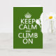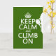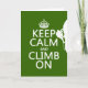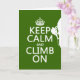 This reads Keep Calm and Climb On, in the style of the classic keep calm poster. There is a rock climber climbing to one side of the words. It makes a beautiful range of products, popular with anyone who loves to climb.