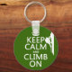 This reads Keep Calm and Climb On, in the style of the classic keep calm poster. There is a rock climber climbing to one side of the words. It makes a beautiful range of products, popular with anyone who loves to climb.