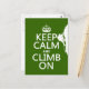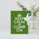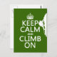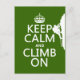 This reads Keep Calm and Climb On, in the style of the classic keep calm poster. There is a rock climber climbing to one side of the words. It makes a beautiful range of products, popular with anyone who loves to climb.