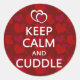 Keep calm and cuddle. A cute and funny Valentine's day with the popular culture trendy "keep calm and carry on" theme. Two cute red and white hearts send a sentimental message to your loved one. Dark red hearts and white text is great for a boyfriend, girlfriend or furry friend who loves to cuddling and being close. All Designs Copyright © 2012 www.CuteComfy.com
