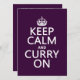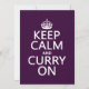This reads Keep Calm and Curry On, in the style of the classic keep calm poster. It's a clean simple design, perfect for everyone who loves curry and spice.