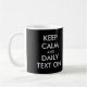Start your day with encouragement using this “Keep Calm and Daily Text On” mug! It's fully customizable, so you can personalize the language, colours, and text style to match your preference.