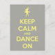 Keep Calm and Dance On Grey on Yellow Postcard