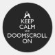 Keep Calm And Doomscroll On. This funny doomscroll design is a great gift for a man or woman who's a doomscroller. Doomscrolling is when you're constantly scrolling through your news apps and social media looking for bad news. This decade has been full of crisis, which can take a toll on your mental wellbeing. If you scroll through your news feed, reading and looking for news articles that give you anxiety, this accessory is probably for you!