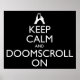 Keep Calm And Doomscroll On. This funny doomscroll design is a great gift for a man or woman who's a doomscroller. Doomscrolling is when you're constantly scrolling through your news apps and social media looking for bad news. This decade has been full of crisis, which can take a toll on your mental wellbeing. If you scroll through your news feed, reading and looking for news articles that give you anxiety, this accessory is probably for you!