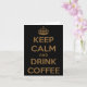 Of the popular "keep calm" theme, this card boldly proclaims to keep calm and drink coffee (designed in coffee colours!)
