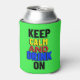 Introducing the "Keep Calm And Drink On" can cooler – the ultimate accessory for relaxation and enjoyment. This vibrant green cooler is designed with the classic phrase "Keep Calm And Drink On," offering a playful yet reassuring message perfect for any occasion. Whether you're hosting a backyard barbecue, lounging at the beach, or unwinding after a long day, this cooler ensures your drink stays cool and your vibes stay chill. Made with high-quality materials, the "Keep Calm And Drink On" cooler combines durability with a touch of humour, making it an ideal gift for friends, family, or even yourself. Its eye-catching design and practical functionality make it a must-have for anyone who appreciates a good drink and a good laugh. Elevate your beverage experience and keep the good times rolling with this fun and stylish can cooler.
