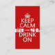 This reads Keep Calm and Drink On, in the style of the classic keep calm poster. It is decorated with silhouettes of a wide range of drinks all lined up in the middle. It's a fun classic design, great for advertising or promoting events.
